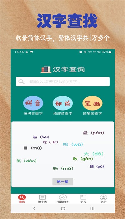汉字字典功能提供组词、造句等扩展内容,帮助孩子全面掌握汉字用法。