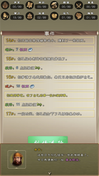 《大侠请重来》是一款以武侠江湖为背景的文字剧情冒险游戏,为玩家打造了一个充满无限可能的武侠世界。游戏采用独特的文字叙事方式,通过简单的点击操作带领玩家体验跌宕起伏的江湖人生。在游戏中,玩家将从选择天赋开始,经历拜师学艺、江湖历练、门派争斗等丰富剧情,每一次选择都将影响角色的命运走向。游戏特别设计了三种模式:"重出江湖"模式让玩家体验完整人生,"华山论剑"模式带来刺激的比武对决,"剧情"模式则专注于故事体验。独特的年份推进机制让玩家可以细细品味每个重要时刻,而随机事件系统则保证了每次游戏都能获得全新体验。