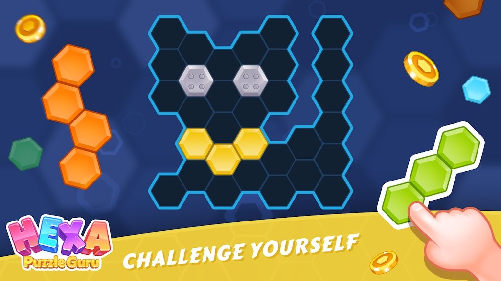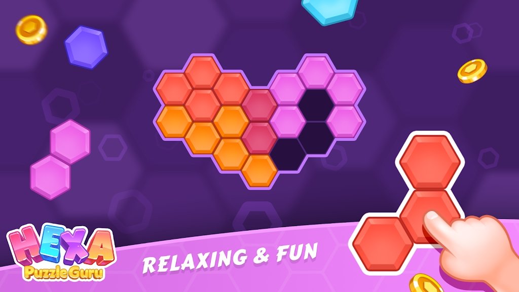 排列块以使其全部适合网格。创新的六边形网格系统,比传统方块拼图更具挑战性和趣味性。