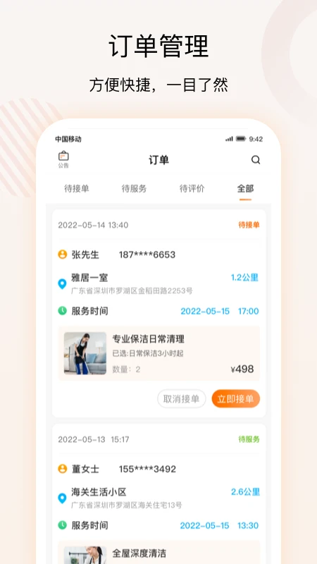 平台操作简单便捷,用户和服务商均可快速上手,提高服务效率。