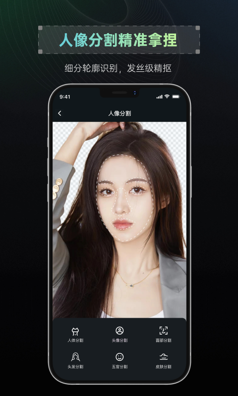 智能识别分割,支持人体、头像、面部、头发、五官、皮肤分割