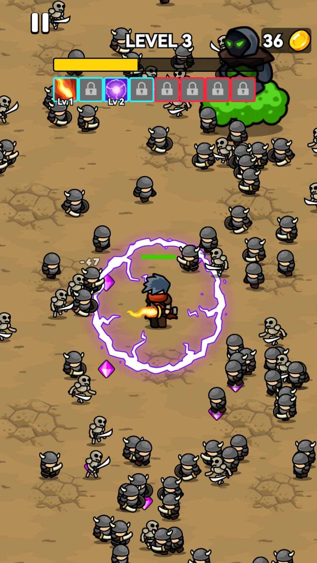 游戏采用经典的俯视角战斗模式,玩家需要灵活操控英雄角色,在怪物群中杀出重围。随着战斗的深入,敌人会变得越来越强大,数量也会越来越多。你需要时刻保持警惕,合理运用各种技能和装备来应对不同的敌人。游戏中设有多种强力BOSS,它们会从意想不到的地方发起突袭,考验你的临场反应能力。通过击败敌人获取经验值,你可以不断提升角色等级,解锁更强大的技能和装备,打造专属于你的战斗风格。