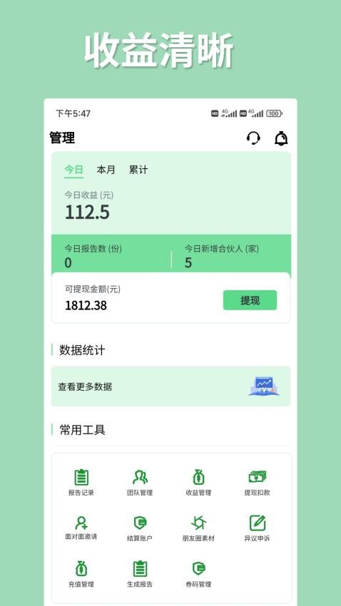 系统采用直观的图表展示用户的收益情况,让每一笔收入都清晰可见。用户可以随时查看收益明细,了解各项业务的盈利情况,方便进行财务规划。