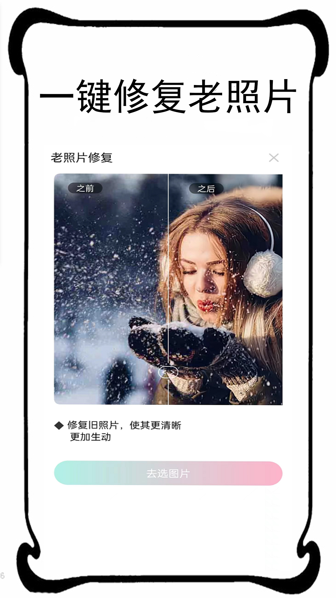 -一键修复老照片:智能识别照片损伤,自动修复划痕、折痕等问题,保留原始细节