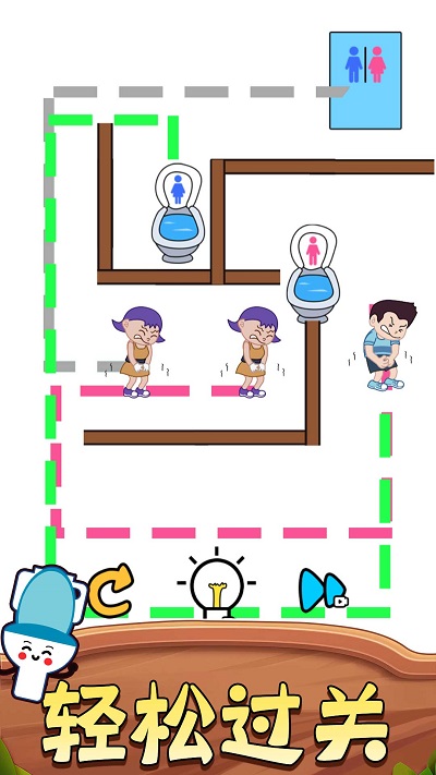 玩家需要通过手指在屏幕上绘制线条,为角色创造通往厕所的安全路径。游戏中的每个关卡都设计了独特的障碍布局和机关设置,需要玩家仔细观察环境并制定合理的路线方案。在厕所急救比赛中,玩家需要同时引导两个角色,增加了游戏的策略性和趣味性。游戏鼓励创造性思维,没有固定解法,玩家可以尽情发挥想象力尝试各种路线。随着关卡推进,还会解锁更多特殊道具和角色能力,让游戏体验更加丰富多彩。