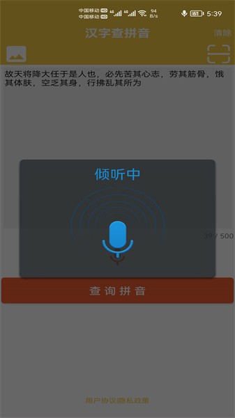app实现了对汉字字典、多音字、词语和成语的智能搜索功能,查询结果准确全面。支持对词语或成语中指定汉字位置的精准搜索,满足专业学习需求。汉字转拼音功能支持批量转换,处理速度快,准确率高。内置高质量语音合成引擎,可对任意汉字或句子进行标准朗读。输出设置灵活,允许用户自定义拼音格式,包括声调显示方式等细节调整,满足个性化学习需求。