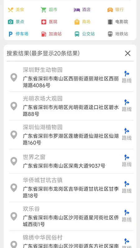 周边搜索:快速查找附近的餐饮、商场、加油站、医院等生活服务场所,一键导航直达。