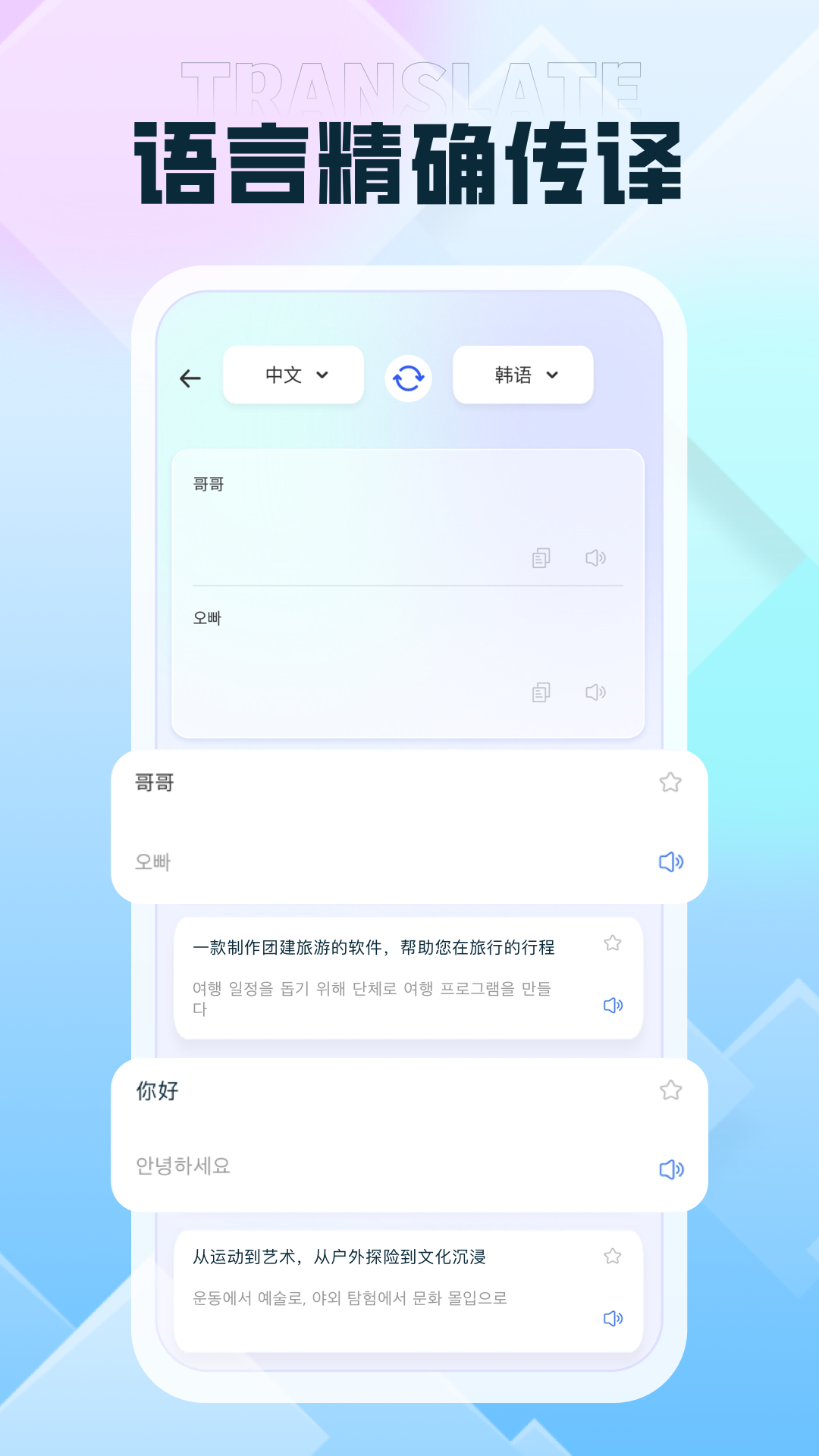 秒转翻译官安卓版是一款功能强大的翻译应用,由专业团队精心打造,致力于为用户提供高效、精准的翻译服务。软件支持全球100多种语言的互译,涵盖文本、语音、图片等多种输入方式,满足不同场景下的翻译需求。内置智能AI引擎,能够快速识别并翻译复杂语句,确保翻译结果的准确性和流畅性。同时,秒转翻译官还提供离线翻译功能,即使在没有网络的环境下也能正常使用。无论是出国旅行、商务洽谈还是语言学习,秒转翻译官都能成为您的得力助手,让沟通无障碍。