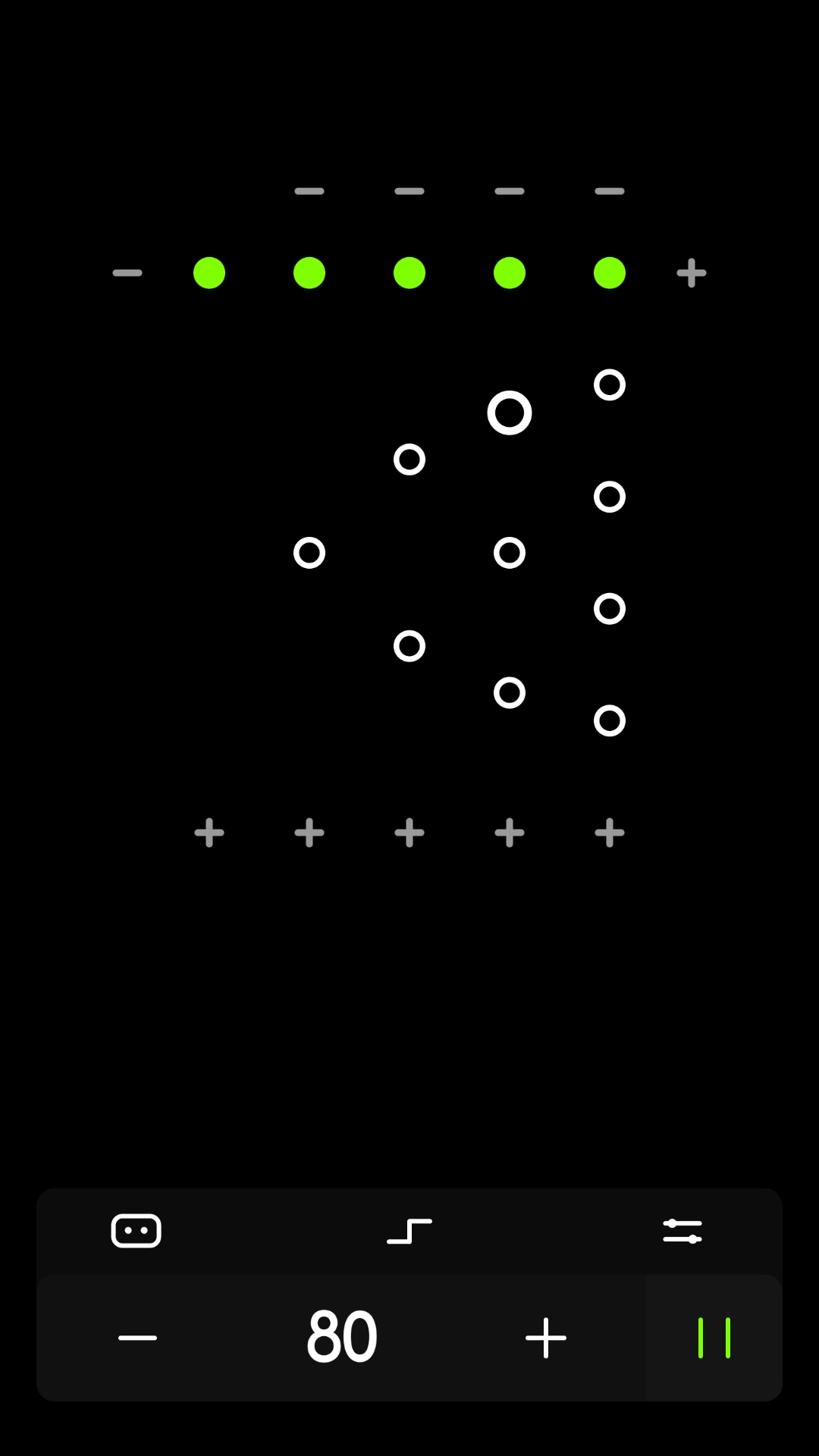 【动态调整】:独特的动态调整功能允许您在节拍器持续运行的状态下,随时增减节拍数量或修改当前节拍参数。