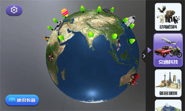 应用内置详尽的百科知识库,用户可以快速查询各类动物、科技成就和著名建筑等信息,并配有专业发音介绍。支持自由筛选显示内容,包括动物百科、交通科技、世界建筑等多个主题选项。用户可以根据兴趣选择不同的服务内容在地球仪上展示,使虚拟地球仪更加立体真实。通过这些功能,用户可以轻松掌握世界各地的知识,拓展视野。