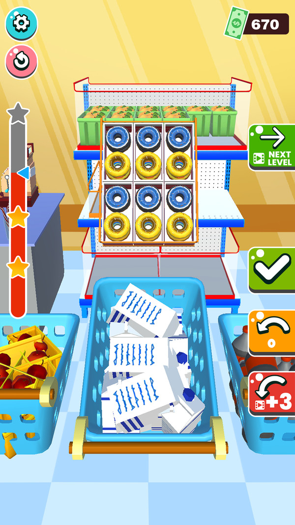 超市陈列师是一款闯关类游戏在游戏中有非常多的食品等你来摆放,只有你不断的提升自己的摆放速度,熟练的掌握摆放技巧,才能速的完成挑战任务,相信你随着时间的推移,可以快速的成为摆放大师。游戏不仅具有娱乐性,还能培养玩家的条理性和空间感。无论是休闲玩家还是追求完美的挑战者,都能在这款游戏中找到属于自己的乐趣。