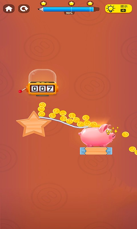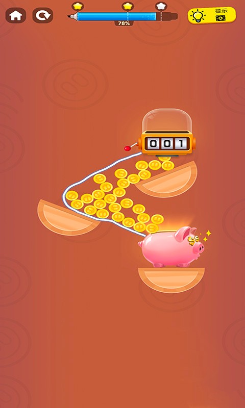 这款游戏的核心玩法是通过绘制线条引导金币滚入存钱罐,看似简单的操作背后隐藏着精妙的物理引擎。每关都有独特的金币分布和障碍物设置,需要玩家开动脑筋寻找最优解。随着游戏进程,还会出现移动障碍、特殊金币等元素,大大增加了游戏的可玩性。游戏采用卡通风格的画面设计,小猪角色呆萌可爱,金币滚动的音效清脆悦耳,为玩家营造出轻松愉快的游戏氛围。