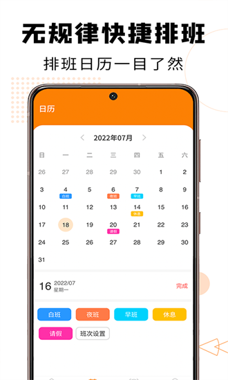 天使排班是一款专为团队管理设计的智能排班工具,它能帮助管理者快速生成员工排班表,大幅提升工作效率。软件提供一键排班功能,支持随时调整班次安排,操作简单直观。用户可以自定义工作时间、休息时段,还能通过不同颜色区分班别,让排班信息一目了然。无论是日常排班还是特殊值班需求,天使排班都能轻松应对,是企业管理者的得力助手。