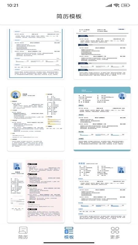 更强大的翻译模式,中文简历需要转换英文也能轻松实现,支持多种语言互译,确保专业术语准确无误。能很好的满足不同用户求职需求,直接打开手机在线查看简历信息,实时编辑修改,让简历保持最新状态。不同行业的简历模板划分还是很详细的,可以快速找到自己真正需要的,每个模板都经过专业HR审核,符合行业招聘标准。
