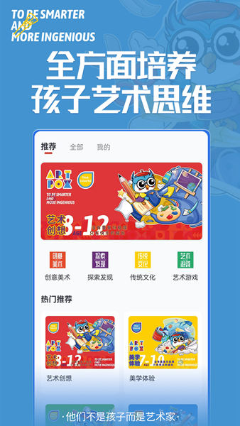 美育星球APP是一款集美术教育、创作交流、材料购买于一体的综合性平台。平台主营业务为在线销售实体美育材料盒子,每个盒子都针对特定主题设计,包含专业绘画工具和详细教程。用户在收到材料盒子后,可以通过APP观看高清教学视频,学习专业的美术创作方法。平台还设有"小嘟圈"社区功能,用户可以在这里分享自己的创作成果,与其他美术爱好者交流心得体会,形成良好的学习氛围。
