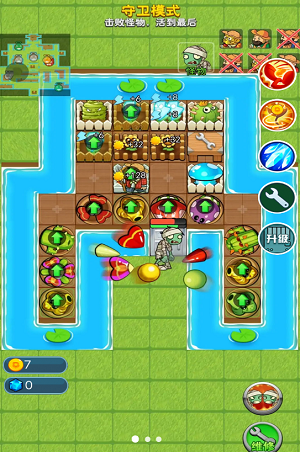 游戏操作简单易上手,但想要精通需要不断练习。玩家可以通过升级防御塔来提升战斗力,解锁更强大的攻击技能。战斗中要注意合理使用特殊技能,比如冰冻效果可以减缓僵尸移动速度,爆炸攻击可以一次性消灭大量敌人。随着游戏进程,玩家将解锁更多强力植物和特殊技能,让防御体系更加完善。