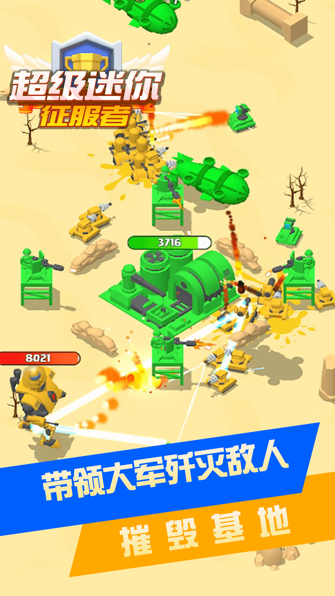 超级迷你征服者将你的手机变成激烈战场,这里有需要守护的基地,有待命出击的部队,一切都等待你的指挥!游戏提供丰富的兵种系统,玩家可以根据作战需求自由组合,打造专属军团。从传统的火炮、坦克到高科技的战斗机、火焰喷射兵,多样化的作战单位让战术选择更加灵活。3D画面让你可以全方位掌控战场局势,既能俯瞰自己的基地布防,又能侦察敌方基地状况,做出最明智的战斗决策。游戏还支持实时多人对战,让你与全球玩家一较高下,体验真正的策略对决。