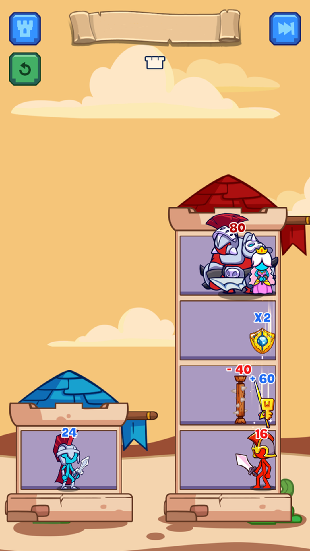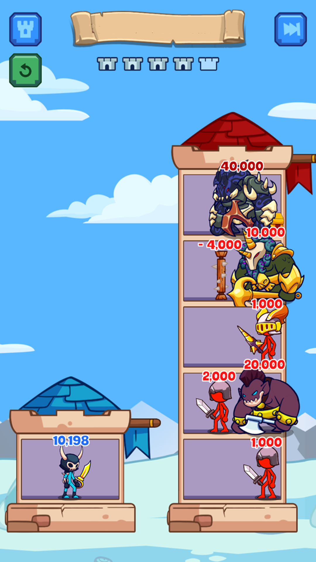 火柴人塔战是一款充满策略与挑战的爬塔战斗游戏。在这款游戏中,玩家将扮演一名英勇的火柴人英雄,通过解锁和搭配各种强力技能,挑战分布在塔楼各层的强大boss。你的终极目标是击败所有敌人,成功拯救被困的公主。游戏不仅考验玩家的操作技巧,更注重策略与智慧的运用,快来试试看你能闯到第几层吧!