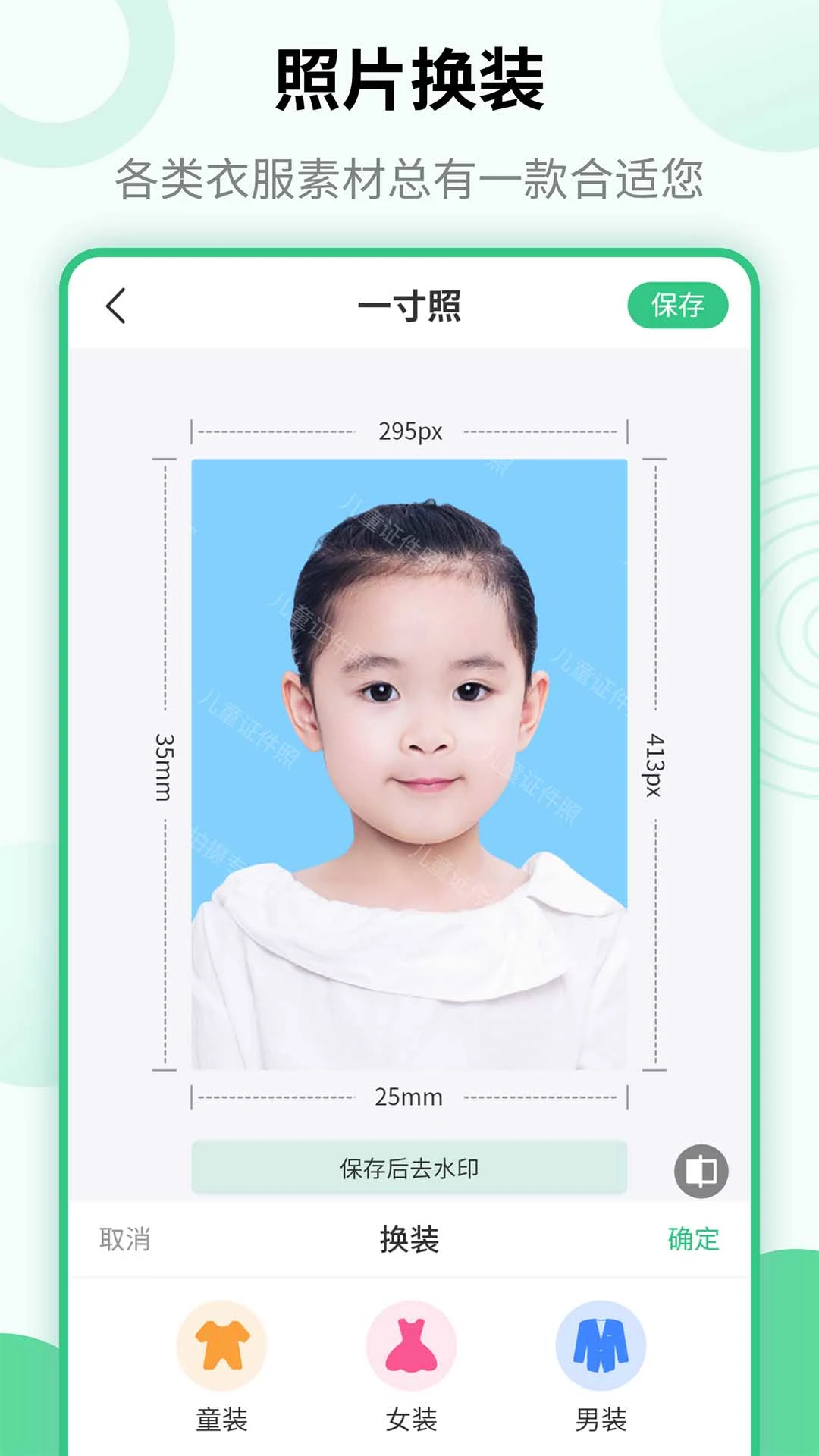 拥有自动校正光线水平、美颜自然不突兀、操作智能便捷、可保存无水印电子证件照到手机相册等强大功能,证件照生成智能化更方便。