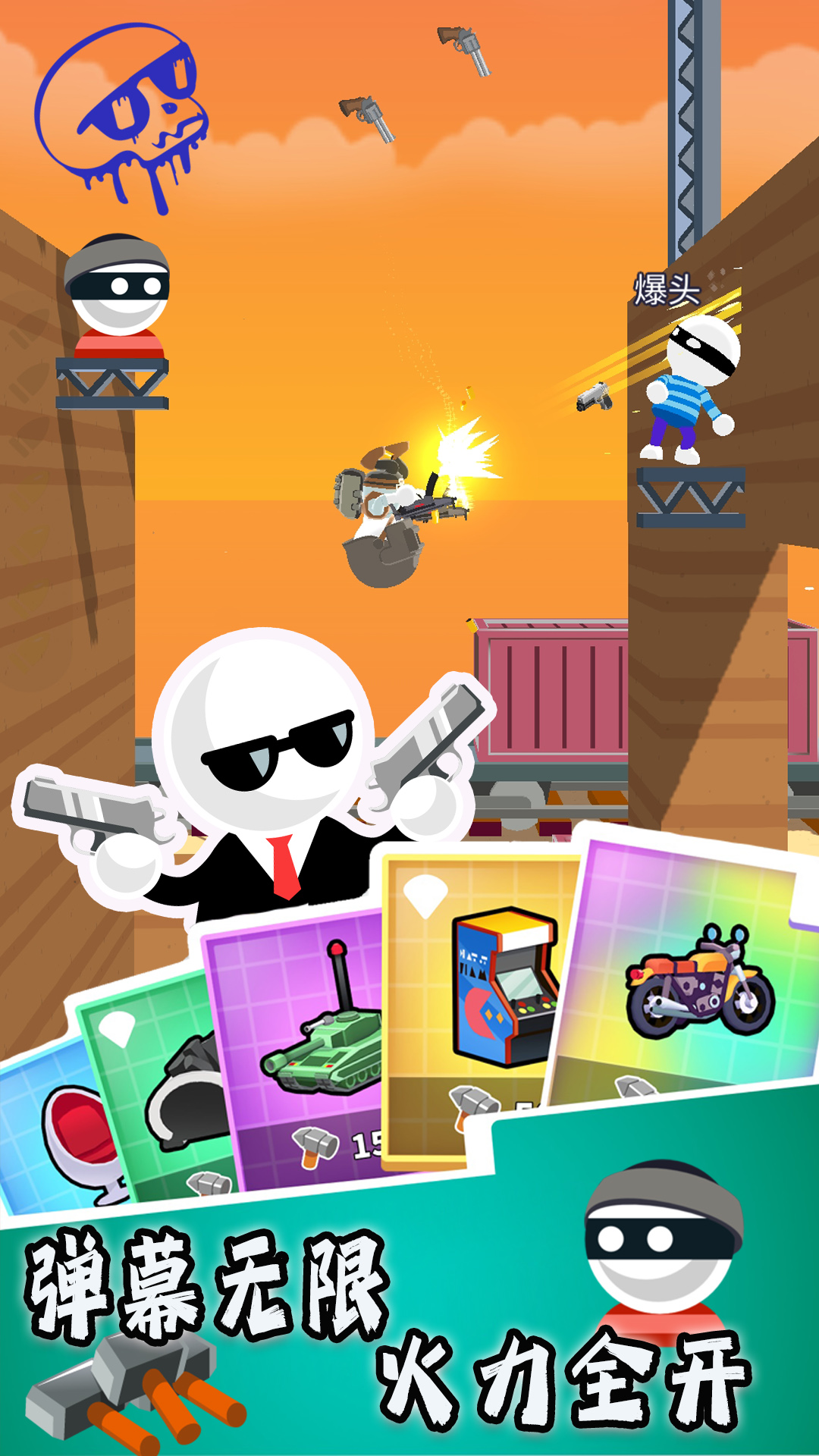 狙击手特工是一款充满趣味与挑战的卡通风格射击游戏,玩家将扮演一名身手敏捷的光头特工,完成各种惊险刺激的任务。游戏采用俯视视角设计,操作直观易上手,但想要成为顶尖特工绝非易事。玩家需要巧妙利用物理反弹机制,精准计算射击角度,才能顺利完成任务。每一关都充满挑战,只有最聪明的特工才能脱颖而出。