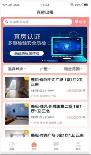 真房实客APP提供了全方位的租房和购房服务功能。用户可以通过在线看房功能,随时随地查看房源实景,足不出户就能了解房屋详情,大大节省了看房时间。平台上的房源信息丰富多样,价格优惠透明,所有房源均经过严格审核,确保真实可靠。特别值得一提的是,软件的租房频道彻底革新了传统租房模式,实现了租房全流程的电子商务化,用户可以在线完成看房、签约、支付等操作,彻底摆脱了传统中介的束缚,让租房更加自由便捷。