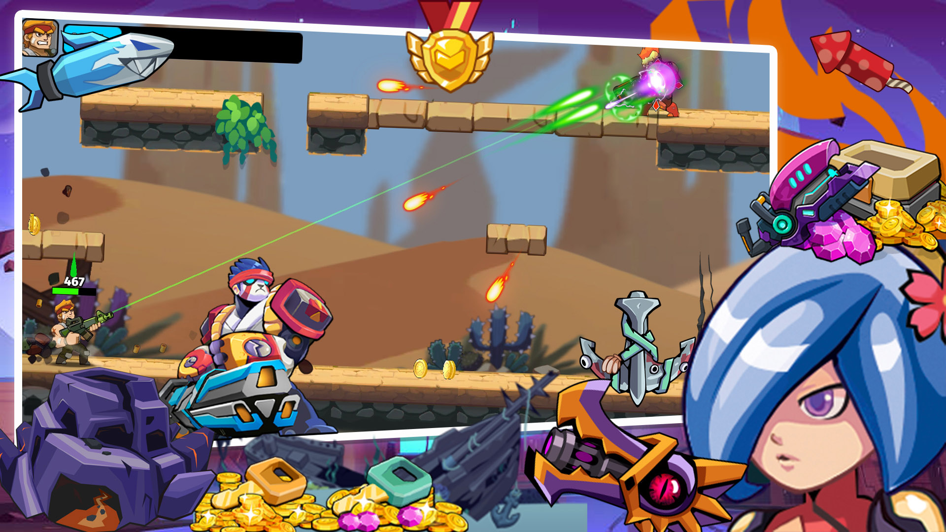 游戏提供了140种威力惊人的武器供玩家选择,从轻型手枪到重型火箭炮应有尽有。游戏支持离线模式,无需联网即可享受完整的2D平台射击体验。150个精心设计的任务将全面考验你的战斗技巧和勇气。面对数百种形态各异的怪物,你需要运用智慧和勇气才能生存下来。游戏采用自动射击机制,操作简单易上手,玩家只需专注于控制角色移动、瞄准和躲避敌人的攻击。随着游戏进程,敌人会变得越来越强大,你需要不断升级装备和技能才能应对挑战。