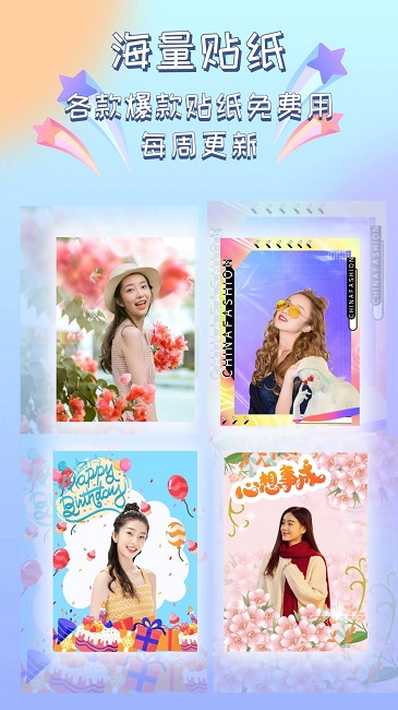 【海量贴纸】:提供上千款风格各异的贴纸资源,从可爱卡通到艺术涂鸦应有尽有,每周都会更新最新流行元素。