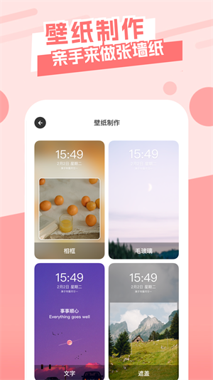 -支持多种流行模板资源,将自己喜欢的图片或者照片进行一键生成您的专属壁纸。提供智能裁剪和美化功能,轻松将普通照片变成专业级壁纸。