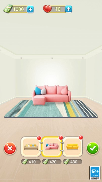 可操作性还是比较高的,你需要根据自己的喜好对房间进行改造。游戏采用直观的触控操作,拖拽、旋转、缩放等动作一气呵成,让装修变得简单有趣。