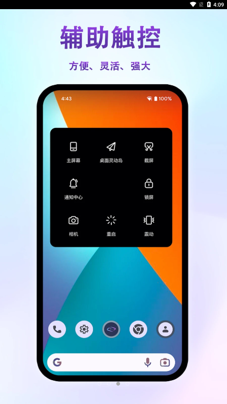 提供多达十余种快捷操作选项,包括截屏、锁屏、音量调节等常用功能,所有操作都能通过简单手势完成