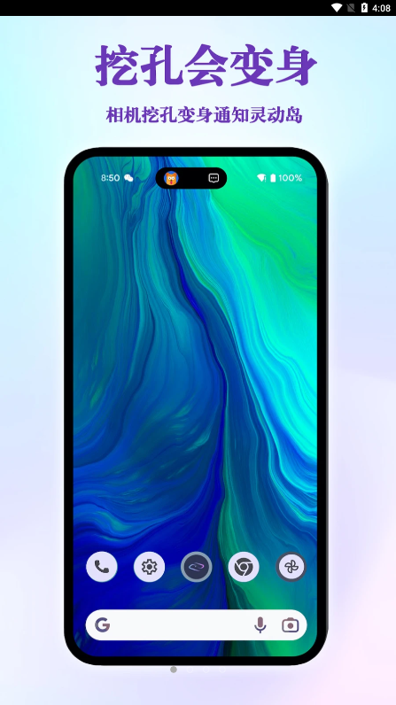 将手机前置摄像头的挖孔区域巧妙转化为动态通知中心,支持多种动画效果和交互方式,让单调的硬件设计焕发新生