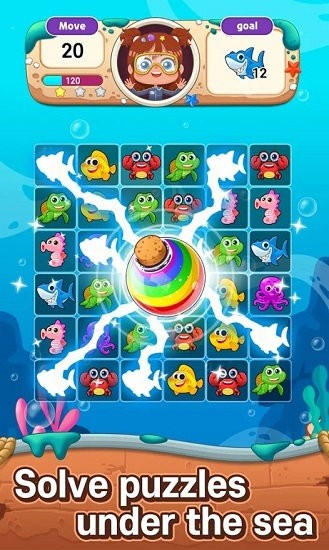 丰富多彩的海洋生物阵容,包含数十种形态各异的可爱动物,通过精准匹配相同种类实现快速消除;精心设计的数百个特色关卡,每个关卡都有独特的动物排列方式,既考验你的观察力又充满新鲜感;限时挑战模式中,快速通关可获得幸运转盘机会,抽取强力道具为下一关保驾护航;随着游戏进程推进,消除难度会逐步提升,从简单的三消到复杂的多步策略,全面锻炼你的反应速度和思维能力。