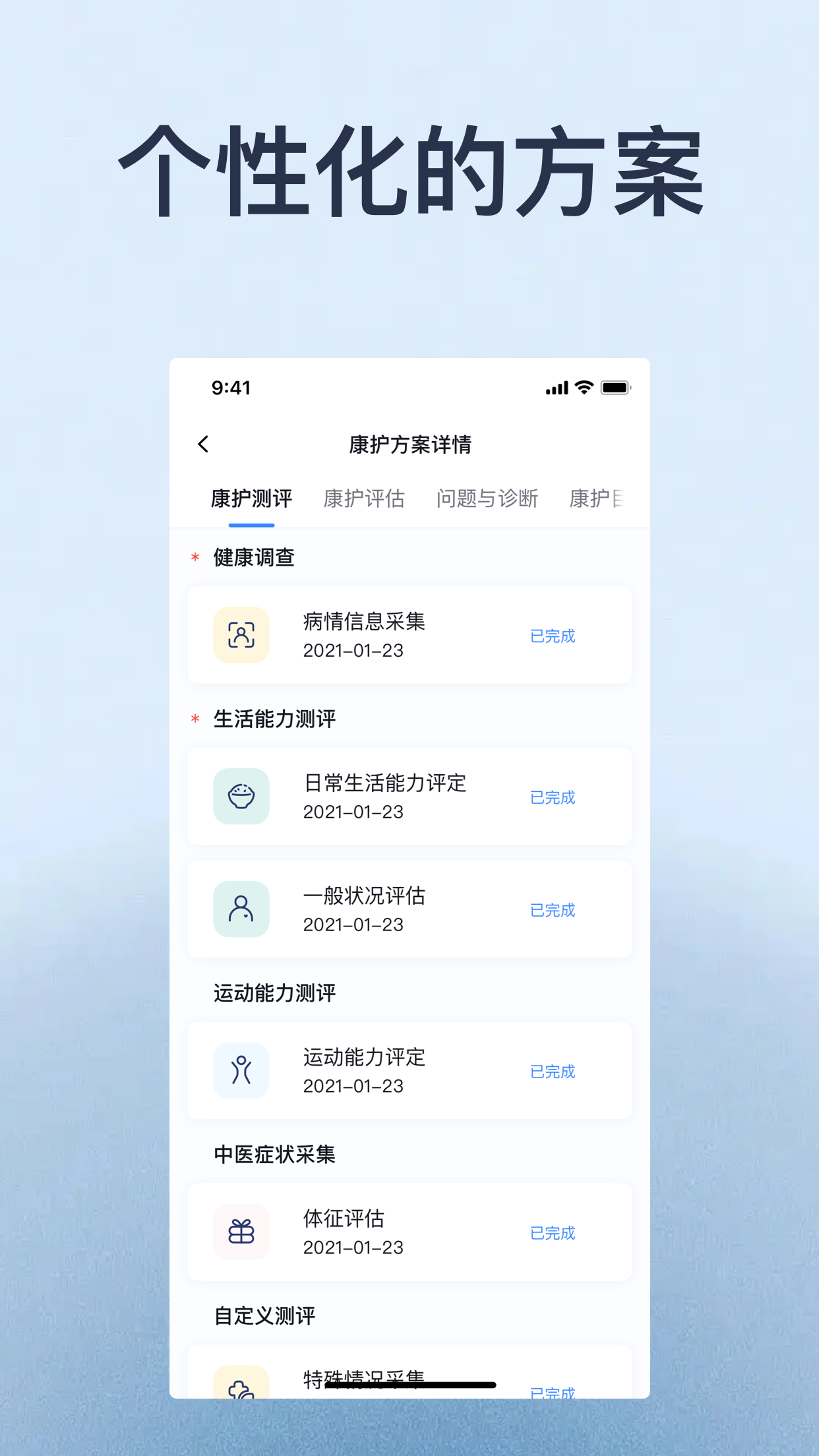 家时康app提供个性化的康复方案设计,根据每位患者的具体情况制定专属的康复计划。平台采用智能化的服务模式,通过大数据分析为患者推荐最适合的康复方案。