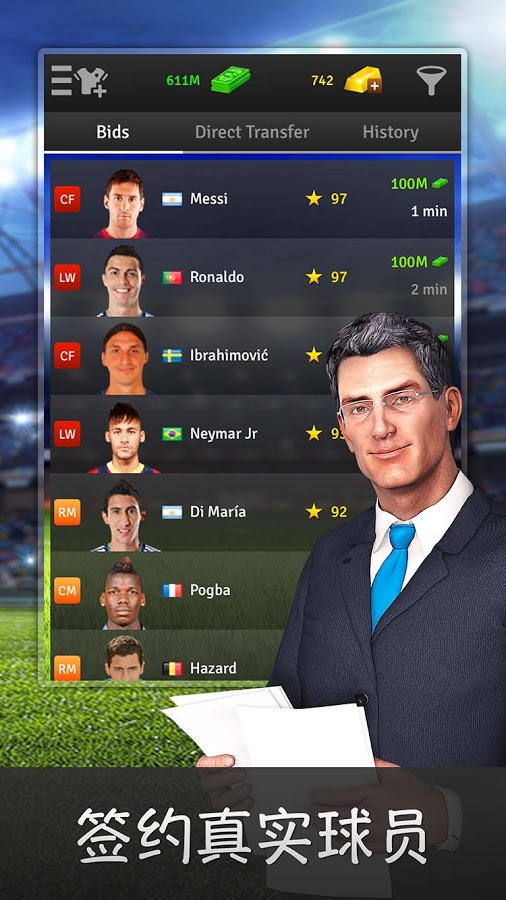 在《GoldenManager》中,你可以签约梅西、C罗、内马尔等当今足坛最耀眼的明星球员,也可以发掘潜力新星,打造属于自己的黄金阵容。游戏收录了来自各大豪门俱乐部的顶级球员,让你可以组建心目中的最强战队。