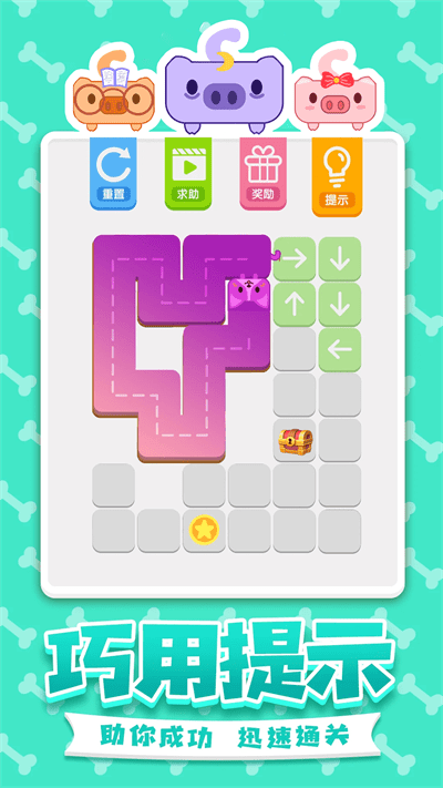 即使是最聪明的猪星人也会遇到百思不得其解的时候!游戏内置的五步提示功能就像一位贴心的助手,在你遇到困难时伸出援手。这个功能设计得恰到好处,既不会让玩家过度依赖,又能帮助突破思维瓶颈,让游戏体验更加顺畅愉快。
