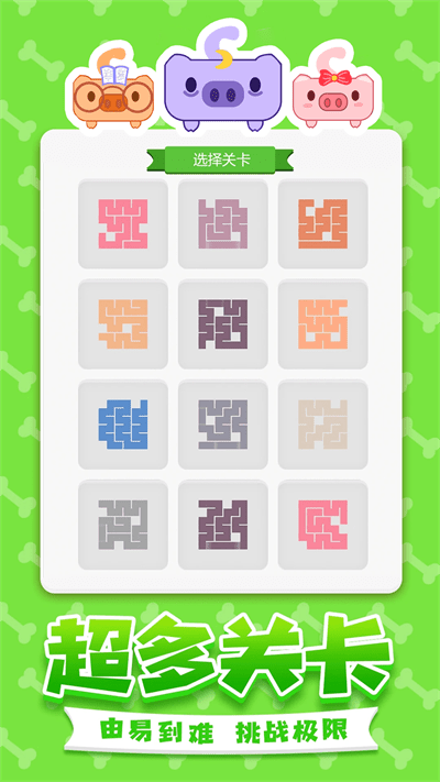 ·游戏操作直观流畅,玩家需要用手指控制一只可爱的小猪,在不重叠、不重复的情况下完成整个路径的绘制。这种玩法既考验空间想象力,又锻炼手眼协调能力。