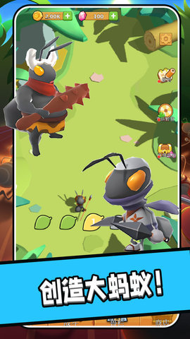 游戏最大的特色在于对蚂蚁社会的真实模拟。每种蚂蚁都有独特的属性和技能,比如兵蚁的攻击力强,工蚁的采集效率高。虽然个体弱小,但当它们团结起来时,就能爆发出惊人的力量。游戏提供了多样化的地图场景,从森林到沙漠,从草原到洞穴,每个场景都有不同的资源和挑战。你可以指挥蚂蚁大军进行远征,与其他昆虫展开激烈的战斗,体验微观世界的战争史诗。