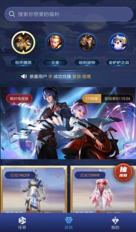 创新的碎片化时间利用机制,让用户可以利用零散时间完成任务,积攒皮肤碎片兑换热门游戏皮肤。任务设计灵活多样,适应不同用户的生活节奏,让皮肤获取变得更加轻松便捷。