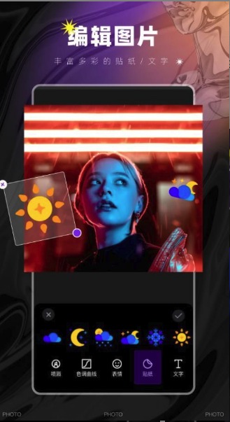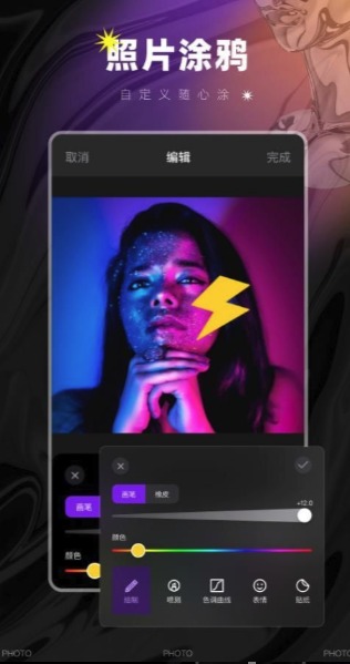 工具丰富,常用的修饰和PS工具都有,包括涂鸦、裁剪等,还特别添加了独特的艺术效果滤镜,让创意无限延伸。