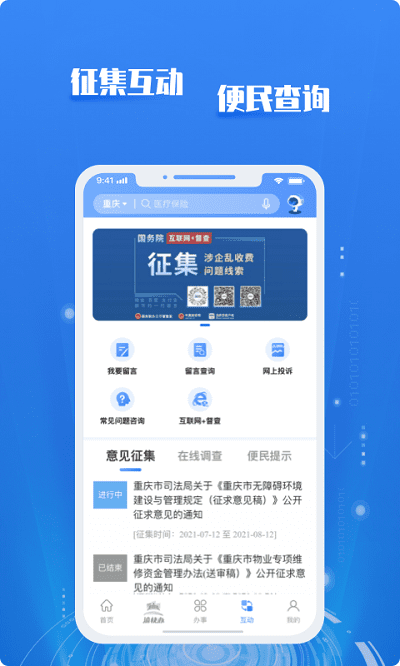 渝快政app是重庆市政务服务中心推出的智能化政务服务平台,致力于打造高效便捷的数字化办公环境。该平台集成了多项政务服务功能,通过移动互联网技术实现政府与市民的无缝对接,让政务办理更加透明高效。用户可以通过app随时查询政策法规、办理各类行政审批事项、获取最新政务资讯,还能参与政民互动,真正实现"指尖上的政务服务"。平台采用人性化设计,操作简单直观,无论是公务员日常办公还是市民办事咨询,都能获得流畅的使用体验。