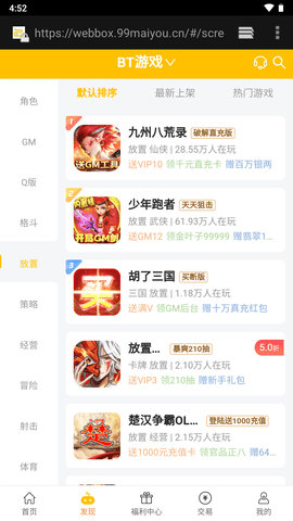 趣玩游戏盒子是一款专为手游爱好者打造的全能游戏平台,汇聚了海量精品手游资源,从经典大作到新锐作品应有尽有。平台提供高速稳定的下载服务,确保玩家随时畅玩最新游戏版本。在这里,您不仅能享受首充福利、VIP特权等超值优惠,还能加入活跃的游戏社区,与百万玩家交流心得,获取大神分享的独家攻略。平台特别推出变态游戏专区,让您体验不一样的游戏乐趣,更有每日更新的金币、钻石等豪华礼包等您来领。
