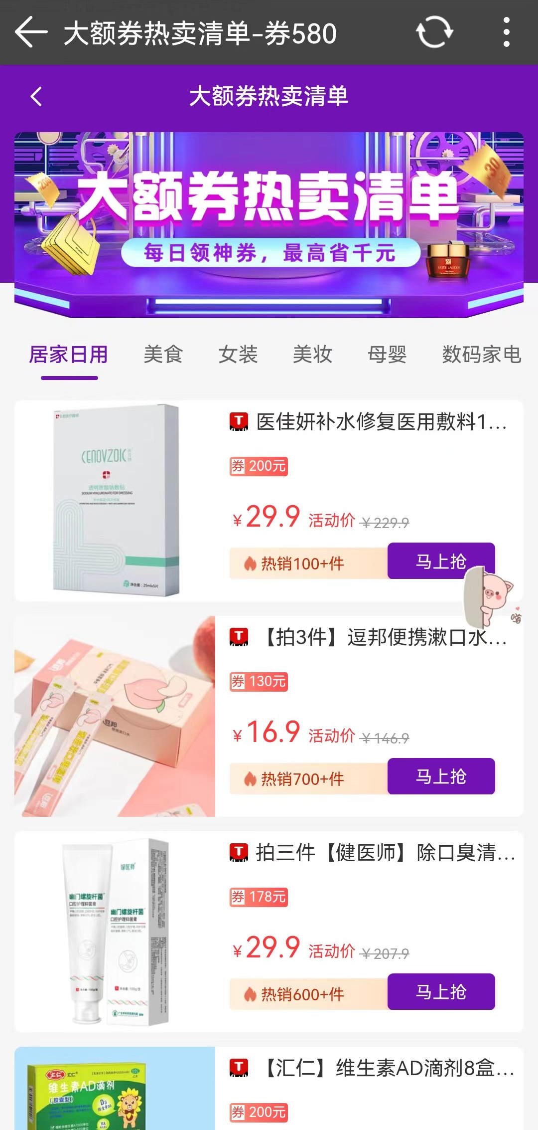 【省钱利器】券580每日更新数万天猫大额优惠券,折扣力度远超官方活动,领券后购物更划算。无论是服饰、美妆、家居还是数码产品,都能在这里找到超值优惠,让你花更少的钱买到心仪好物。