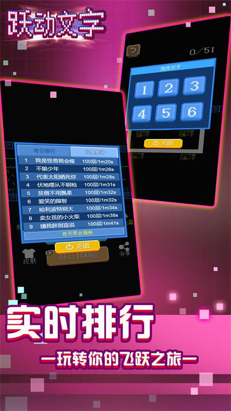 跃动文字跳一跳游戏安卓手机版是一款极具创意的文字题材闯关游戏,玩家将控制文字角色在奇幻的世界中不断前进。游戏采用独特的文字跳跃机制,每个关卡都设计巧妙,充满挑战性。随着游戏进程,玩家可以解锁更多有趣的文字角色和特殊技能,体验不同风格的闯关乐趣。这款游戏不仅考验反应能力,还需要玩家开动脑筋解决各种文字谜题,是一款寓教于乐的精品手游。