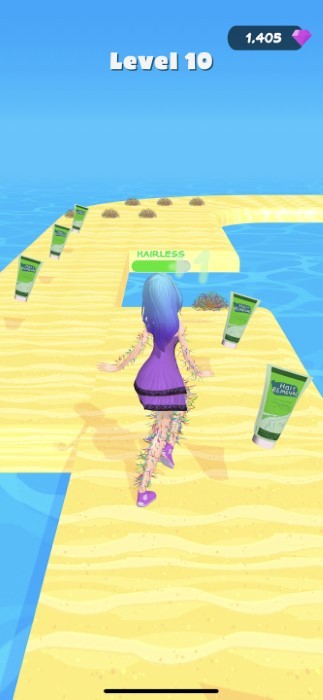 在跑酷过程中,玩家需要灵活操控角色,避开跑道上的障碍物,同时收集有用的道具。特别要注意收集脱毛膏,这是清除毛发的重要工具。通过摇杆控制角色的移动方向,玩家可以精准地完成各种高难度动作,享受流畅的操作体验。