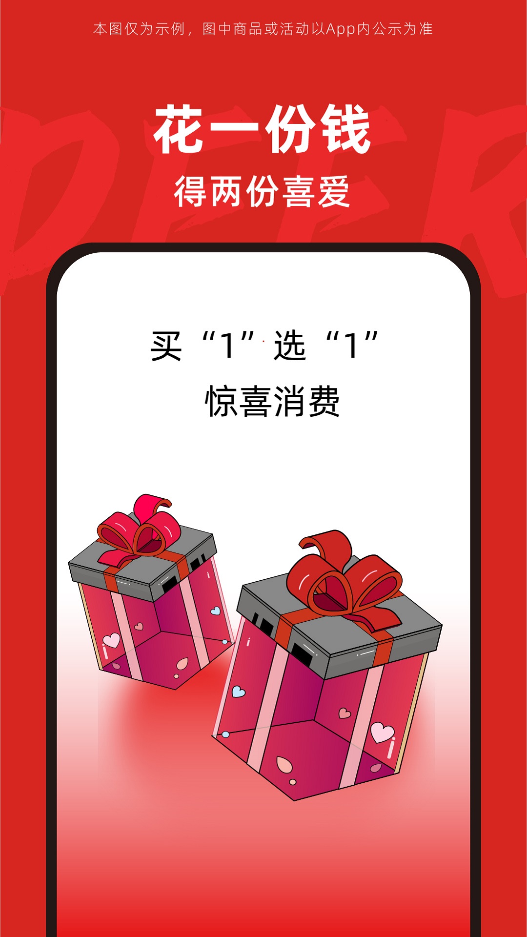 买"1"得"2":创新的"买一得二"模式让您在购买所需商品的同时,还能自由挑选一件心仪赠品。只需支付一件商品的价格,就能同时获得两件商品,让您的每一分钱都花得超值。