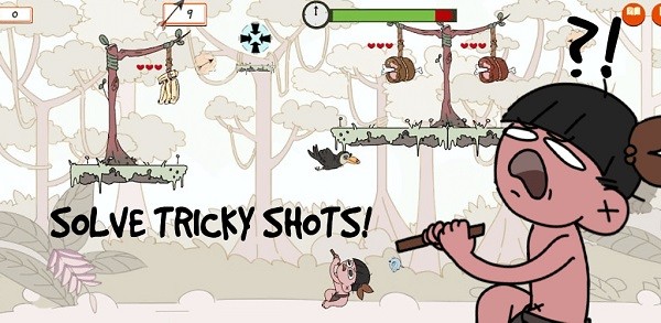 丛林烦恼游戏是一款充满趣味性的休闲射击类游戏,采用精美的卡通风格画面,将玩家带入一个充满原始风情的森林部落世界。在这里,玩家需要运用精准的弓箭射击技巧,击落悬挂在高处的各种水果和食物,展开一场别开生面的丛林冒险。游戏操作简单易上手,但想要成为真正的丛林神射手,还需要不断磨练技巧。无论是休闲玩家还是射击游戏爱好者,都能在这款游戏中找到乐趣,快来下载体验吧!