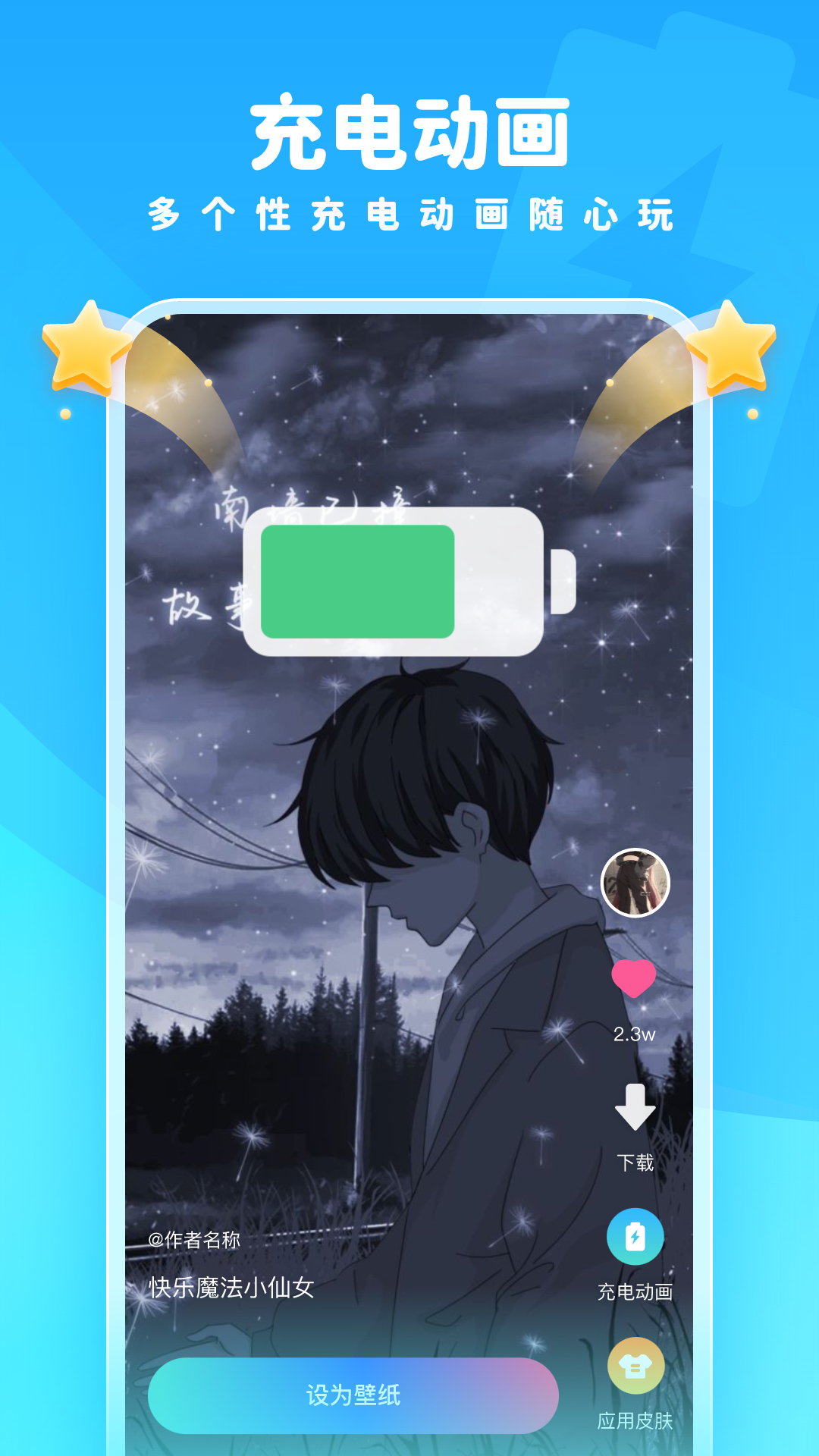 多个个性化动画随心而动,动画效果可随时创建,观看更加方便;支持自定义动画速度和方向。可以随意从各种高清壁纸中进行选择,使其更方便随时更换;提供壁纸预览功能,避免频繁更换的麻烦。您可以自由更换大量流行壁纸,动态壁纸的效果更加立体,让您体验更多变化!新增3D视差效果,让壁纸随手机移动产生动态变化。支持定时自动更换壁纸功能,每天都有新惊喜。
