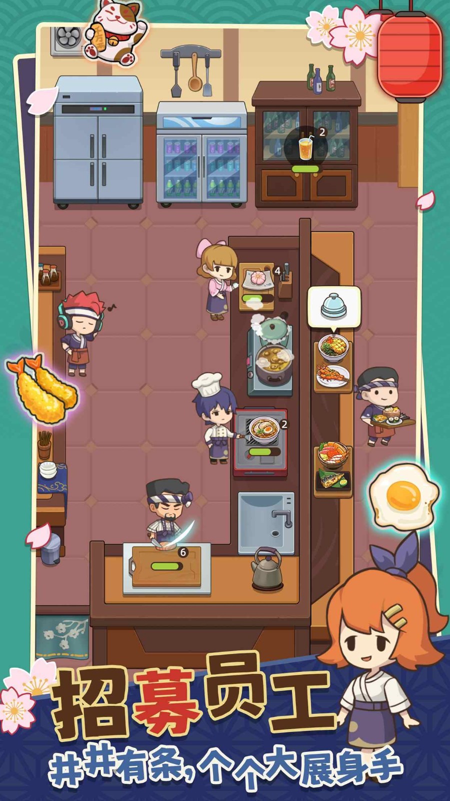 店铺扩张:二层以上可设置VIP包厢,接待特殊客人获得大额小费。顶层露台解锁后能举办"星空寿司宴",大幅提升店铺知名度。