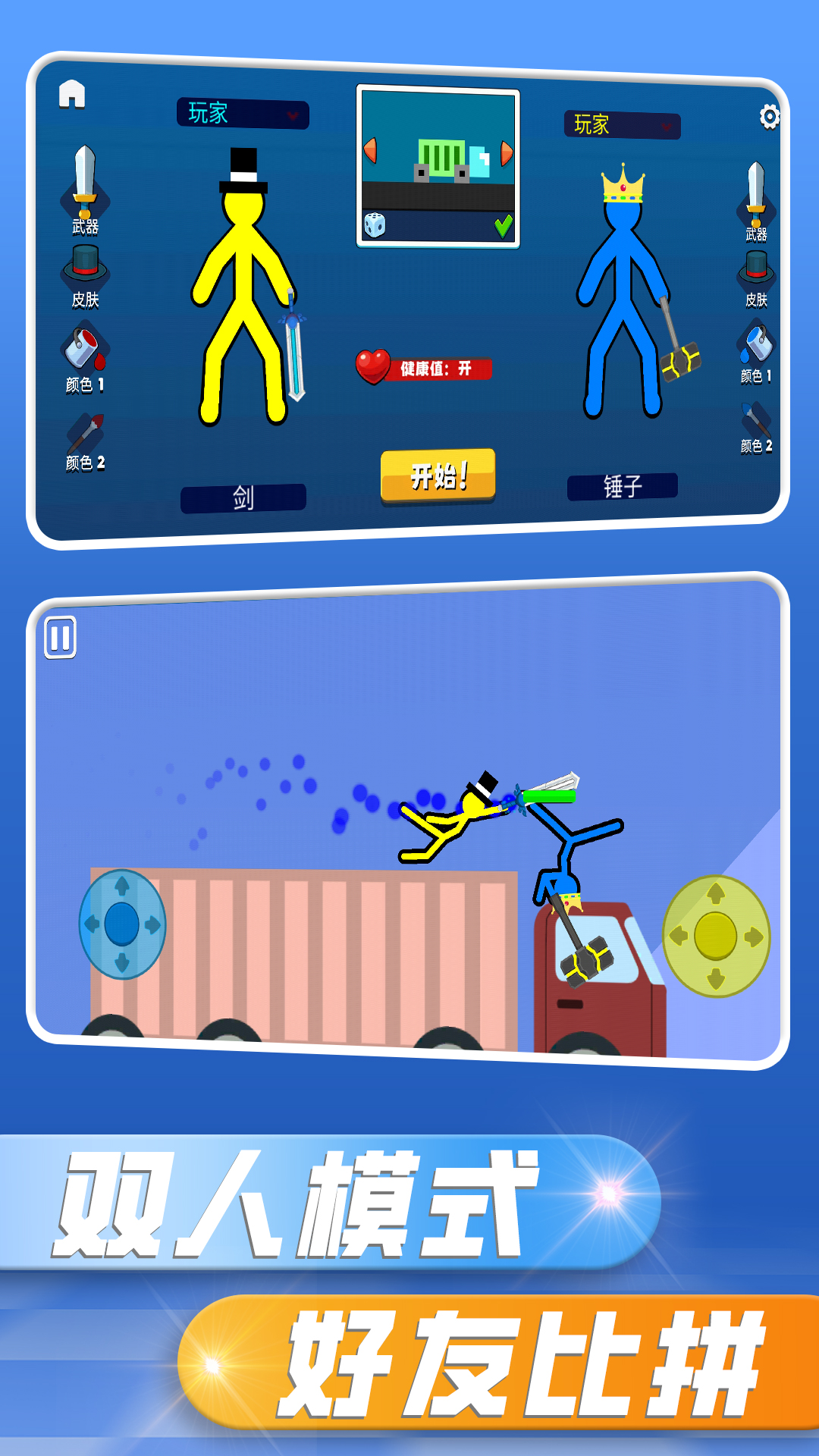 火柴人的愤怒是一款充满创意与激情的火柴人格斗对战游戏。游戏采用独特的横版格斗玩法,支持双人对战模式,玩家可以操控个性十足的火柴人角色,通过灵活走位和炫酷连招展开精彩对决。游戏拥有丰富的角色收集系统,随着游戏进程可以解锁更多造型独特的火柴人战士,让每一场PK对决都充满新鲜感。