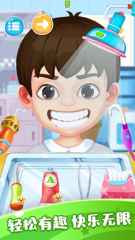 在宝宝牙博士游戏中,小朋友们将扮演专业的牙科医生,为前来就诊的患者解决各种牙齿问题。游戏提供了完整的牙科治疗流程:首先需要使用专业工具检查牙齿状况,然后根据问题类型选择相应的治疗方案。比如用牙钻清除蛀牙部分,用填充材料修补牙洞,或者用专业的洗牙设备清除牙齿表面的污渍。对于严重损坏的牙齿,还可以进行拔牙手术。完成治疗后,小朋友还可以为患者装饰牙齿,使用各种颜色的牙箍、闪亮的贴纸来美化牙齿,甚至可以为患者搭配可爱的帽子和眼镜,让治疗过程充满欢乐。